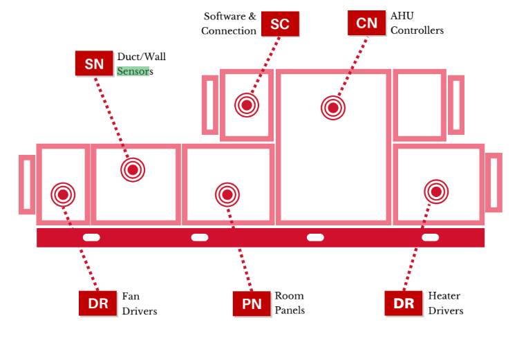 Ever y ai r handl ing uni t requi res balanced and preci se cont rol . QBIT dev ices prov ide rel iable and flex ible operat ion acros s al l key point s — f rom fans and heater s to sensor s and cont rol ler s .